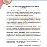 «Expresamos nuestra solidaridad sentida al pueblo palestino, en especial a las familias y a las personas que sobreviven a la operación militar “Espada de Hierro” que ejecutan Israel/Estados Unidos. La...