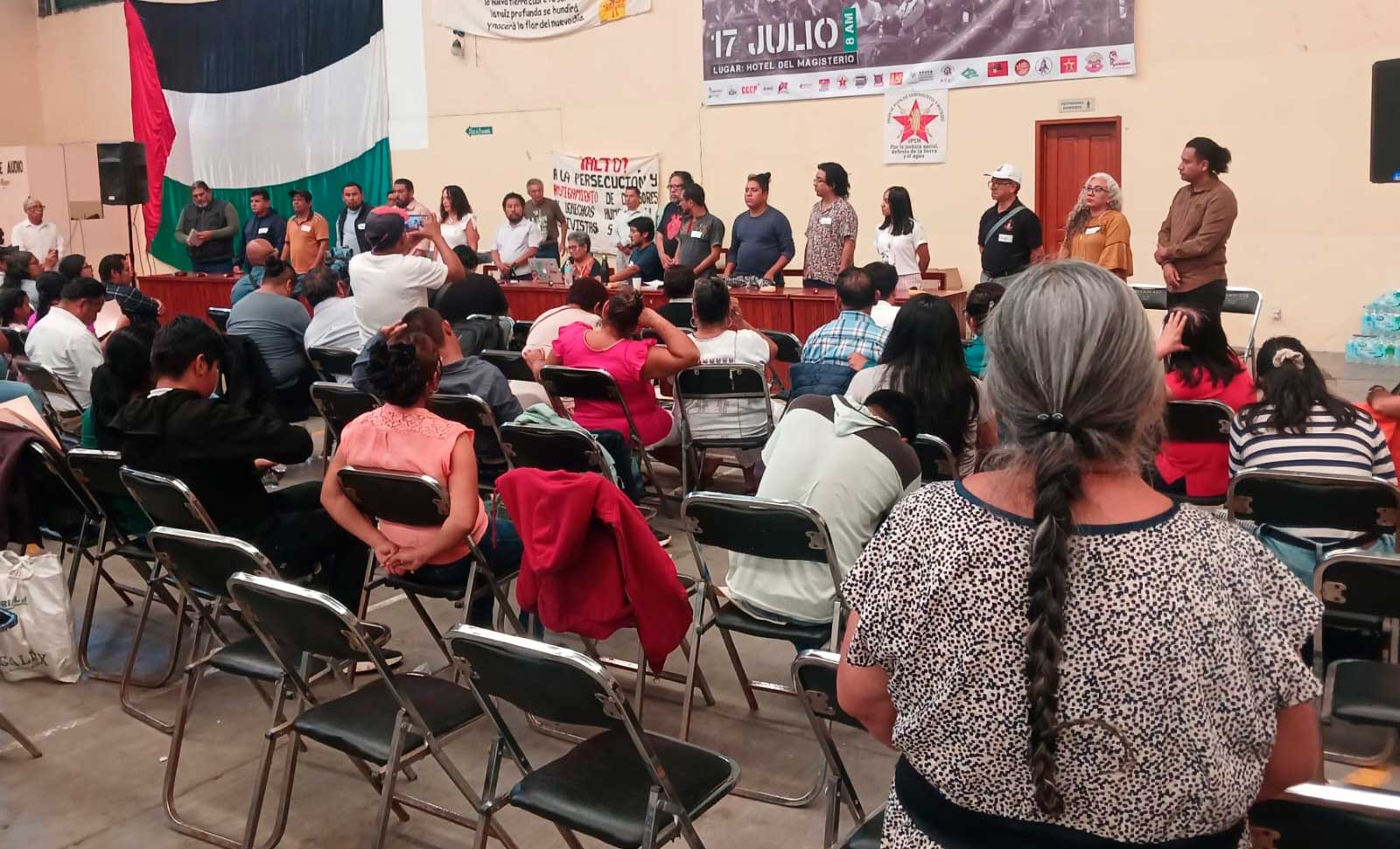Con la participación de más de 40 colectivos, organizaciones sociales y sindicales, provenientes de 60 comunidades, que se reunieron el 17 de julio de 2025 en la ciudad de Oaxaca, para reflexionar sobre la historia del movimiento social oaxaqueño y tomar acuerdos para su reconstitución, mujeres y hombres, defensoras y defensores de sus territorios, convinieron que esta tradición de lucha continúa en la actualidad ante los embates de los gobiernos estatal y federal que se caracterizan por políticas neoliberales de despojo, represión, militarización, así como por la cooptación y criminalización de activistas, defensores y luchadores sociales.